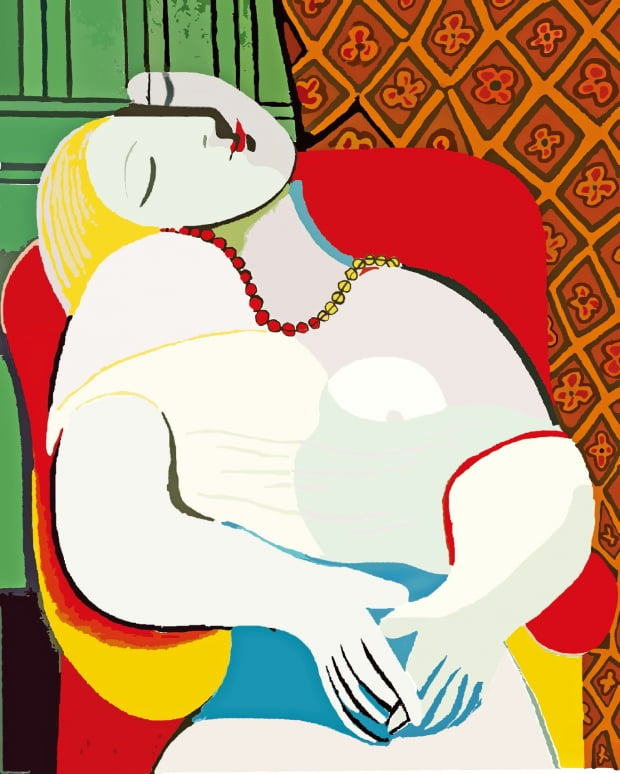 피카소는 바르셀로나 미술학교와 마드리드 산페르난도 왕립학교에서 고전적인 화풍의 그림을 그리다 파리 몽마르트르로 넘어가 모네, 마티스, 폴 세잔, 로트렉 등의 다양한 화풍의 화가들을 만나 서로 영향을 주고받았다. 이후 친구의 죽음으로 청색 시대, 첫 뮤즈인 페르낭도 올리비에를 만나 장밋빛 시대를 거쳐 삶에 따라 다른 입체주의(큐비즘), 신고전주의, 초현실주의 등 다양한 화풍을 보여주었다.