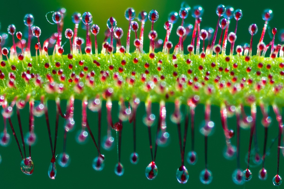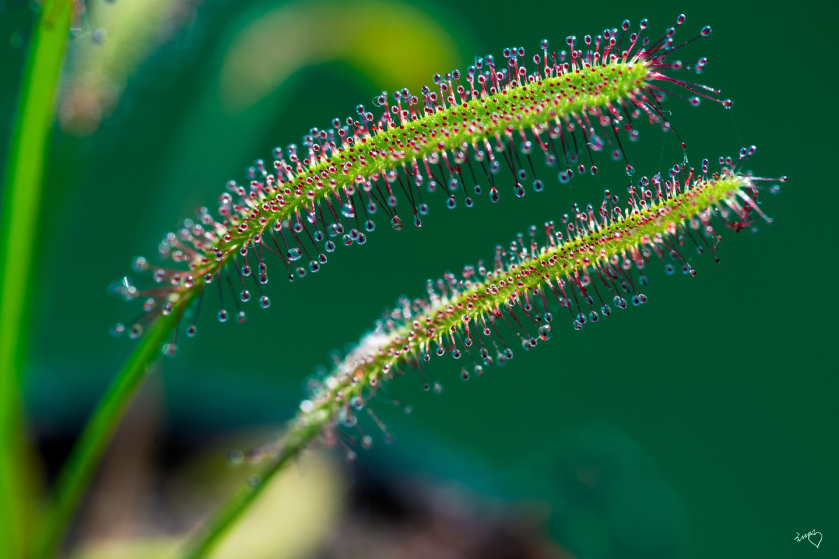 어느 날 아이들이 생명과학 활동 시간에 배웠다며 풀 한 포기를 들고 왔다. 푸른 줄기에 열매처럼 수없이 달린 돌기와 그 끝에 매달린 물방울들을 보면 한 번쯤 달려들어 맛을 보고 싶게 만드는 풀이다. 파리든 모기든 한번 이 풀에 앉기만 하면 절대로 살아남기 어렵다. 이 샘털 끝의 끈끈한 액체에 붙잡히면 그 속에 들어있는 효소에 의해 벌레는 완전히 녹아서 식물에 흡수되고 만다.