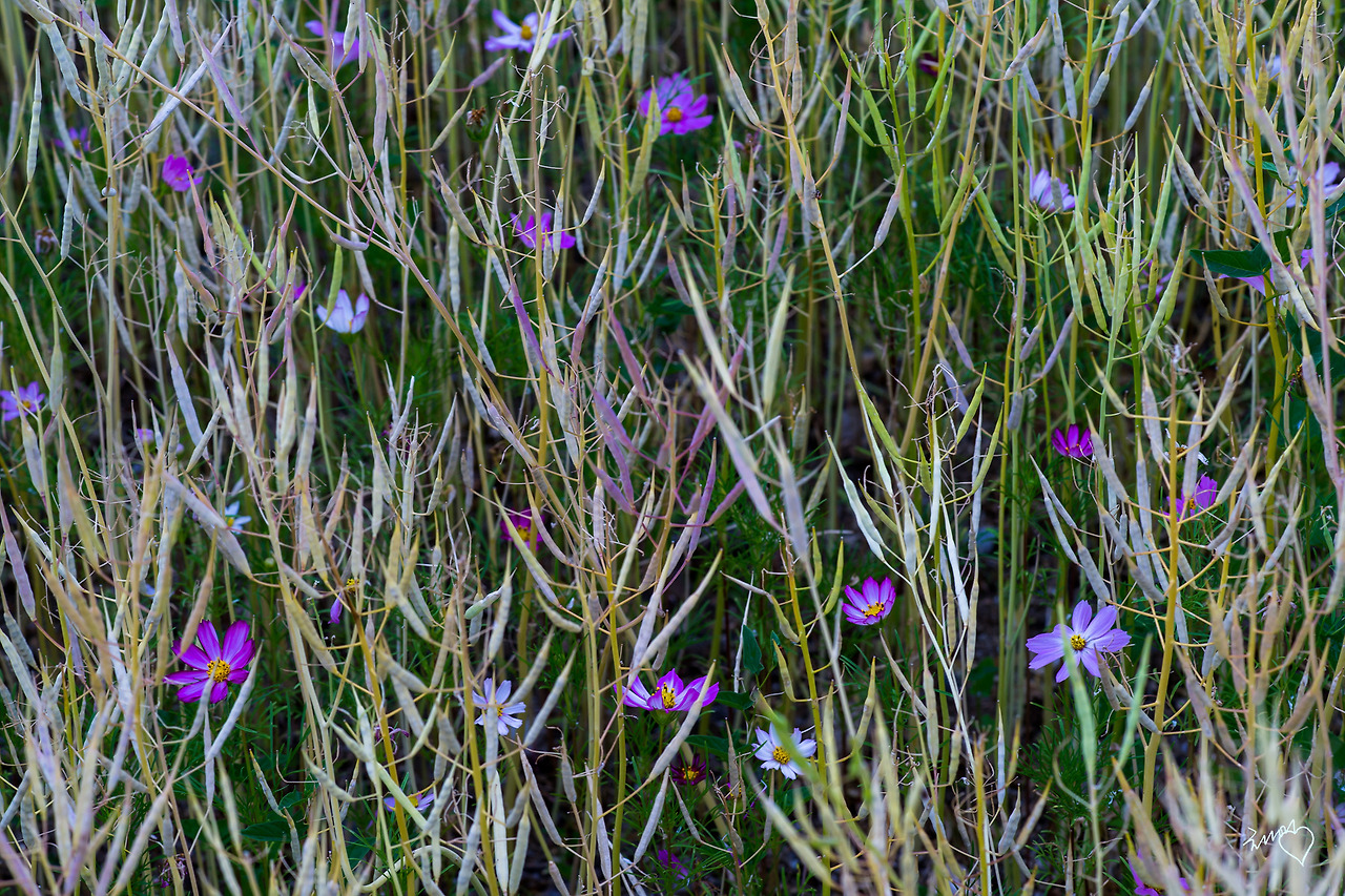 노란 유채가 만발했을 때는 사람들이 이곳에 와서 사진도 찍고 감탄을 하며 즐거운 시간을 보냈을 것이다. 하지만, 누구도 막 싹이 난 코스모스의 존재를 알아보지 못했을 것이다. 그저 황량해 보이는 식물들 사이사이에 고운 점찍어내며 피어난 코스모스를 한참 바라보기 아름답기 그지없다.