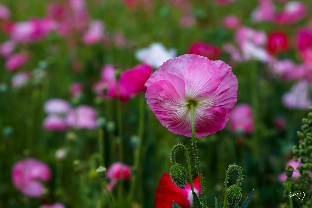 의왕의 한 아파트 단지 옆에 넓은 공터에 시에서 양귀비꽃을 많이 심어 놓았다. 꽃들이 이미 시들 어 가고 있는데다 오전에 비가 온 탓인지 꽃 이파리가 제대로 펼쳐진 게 거의 보이지 않았다. 활짝 피어난 이 꽃 하나를 간신히 찾았는데, 꽃 이파리에 상처가 있지 않은가? 해도 가려서 안보이고 바람은 불어 대고 빗방울도 한두 방울씩 떨어지는데, 어쩔 수 없이 이 꽃을 사진으로 담아 왔는데, 집에 와서 보니 볼수록 아름답다.