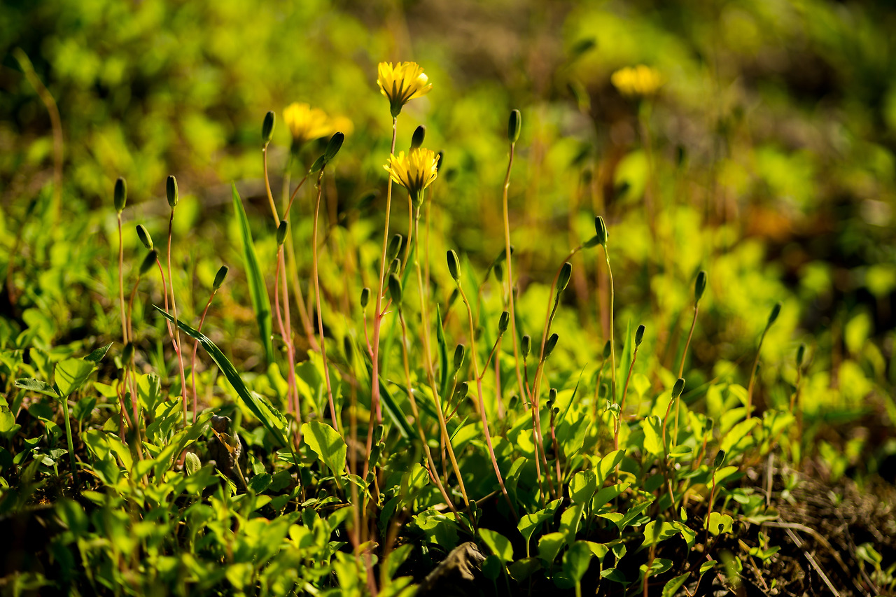 산의 양지바른 곳에 수줍게 피어난 좀씀바귀