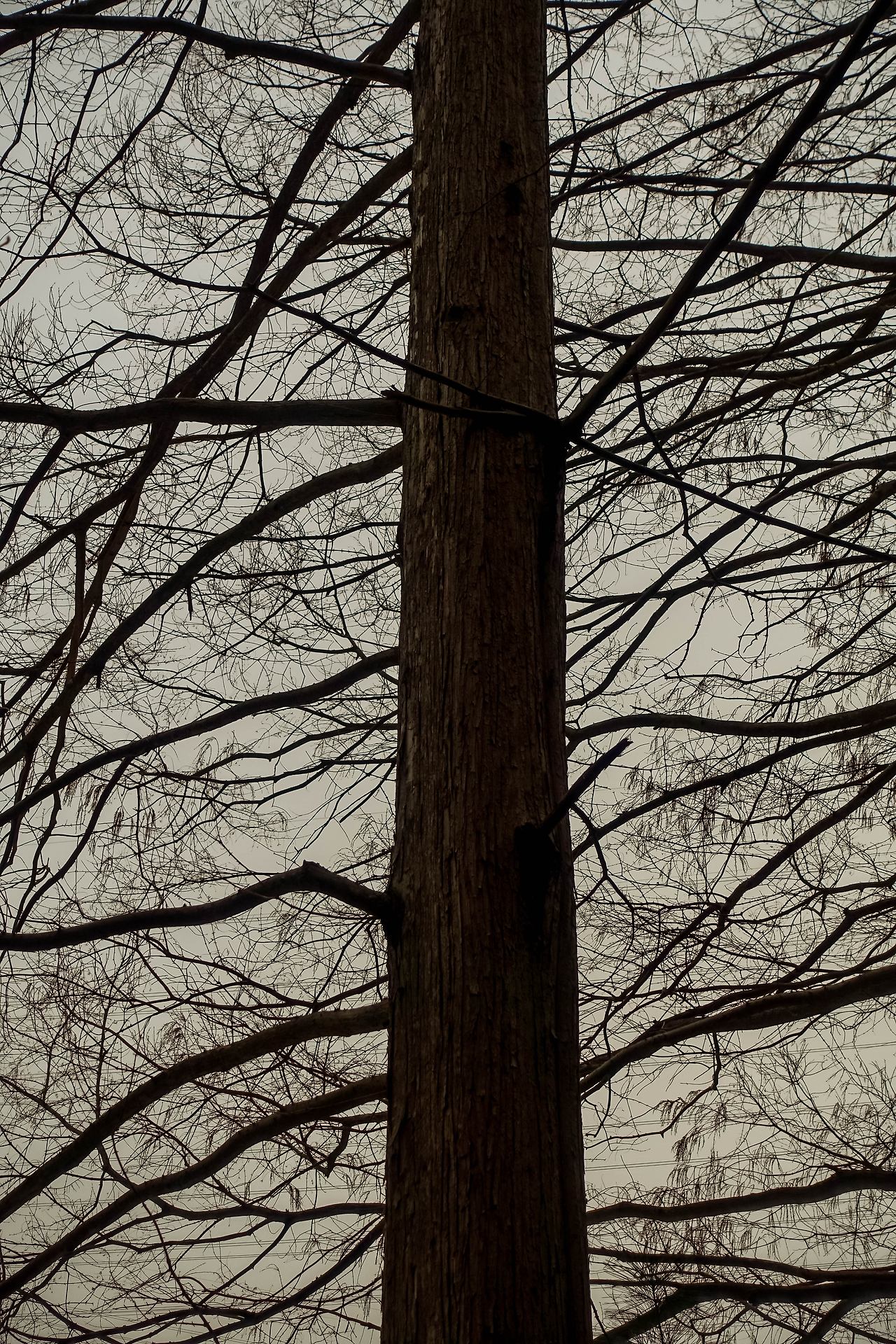 장대한 메타세콰이어 숲에 들어가서 사방을 둘러보았다. 빛이 한쪽으로만 주로 들어서 그런지 나무의 가지들이 한 방향으로는 왕성하게 자라 있었고 반대편은 좀 부실해 보였다. 그래서 그런지 멀리서 보면 마치 한쪽으로만 가지가 쭉쭉 뻗은 모양이었다.