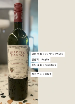 primitivo 품종으로 만든 이탈리아 puglia(풀리아) 지역의 와인. 2023년 산