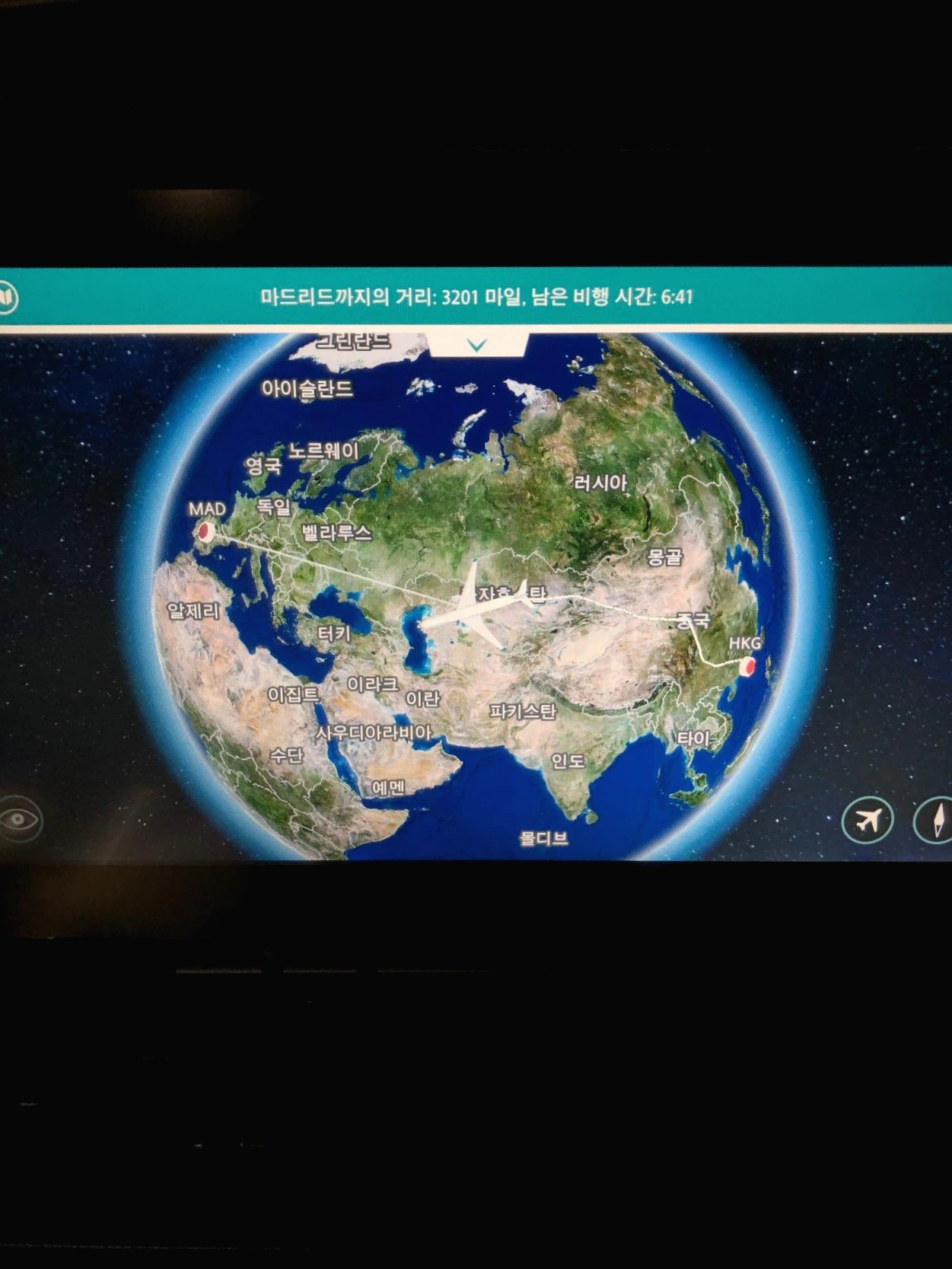 항로를 보니 카자흐스탄 하늘 위군요.