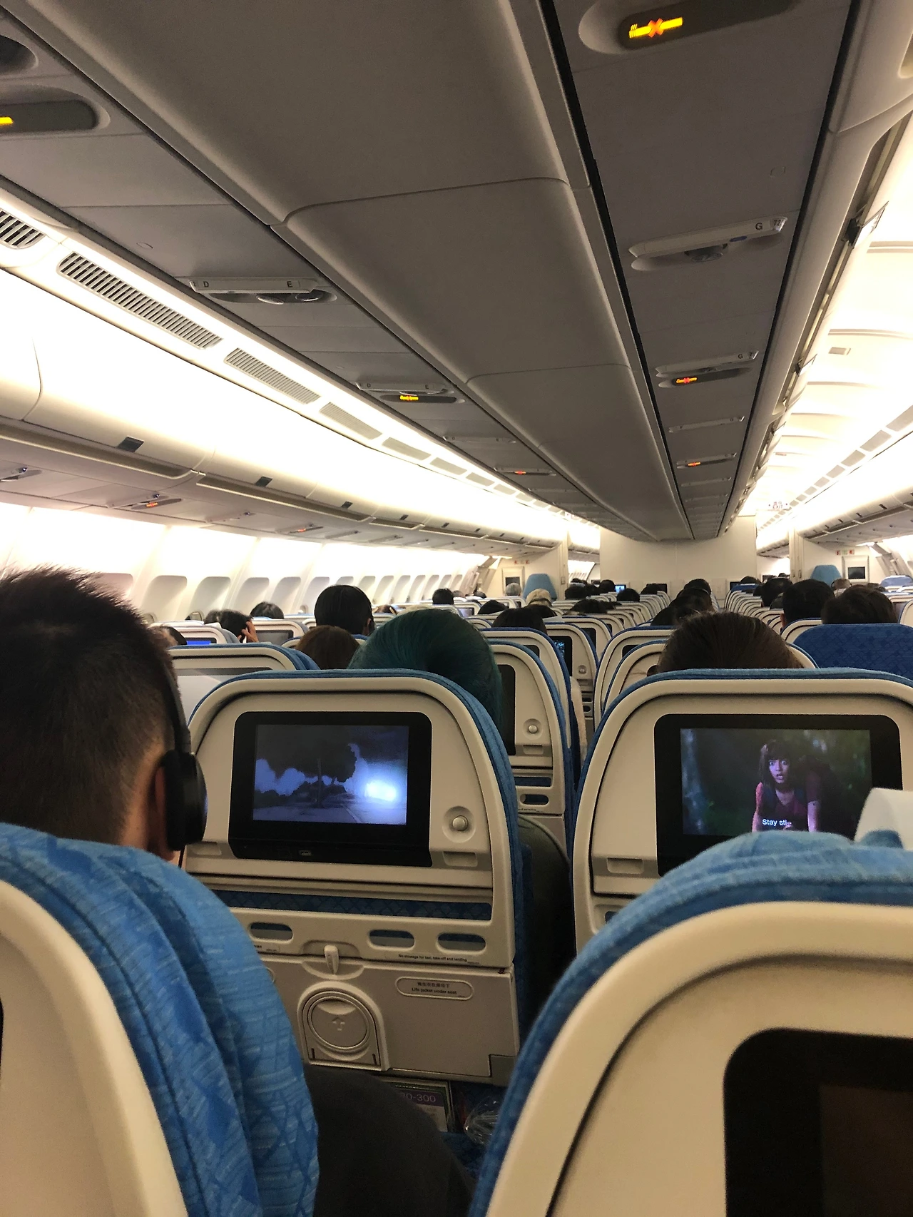 승무원에게 이야기를 건네고... 몇 번 왔다 갔다 고치려 했지만... 결국.... 첵랍콕까지 모니터는