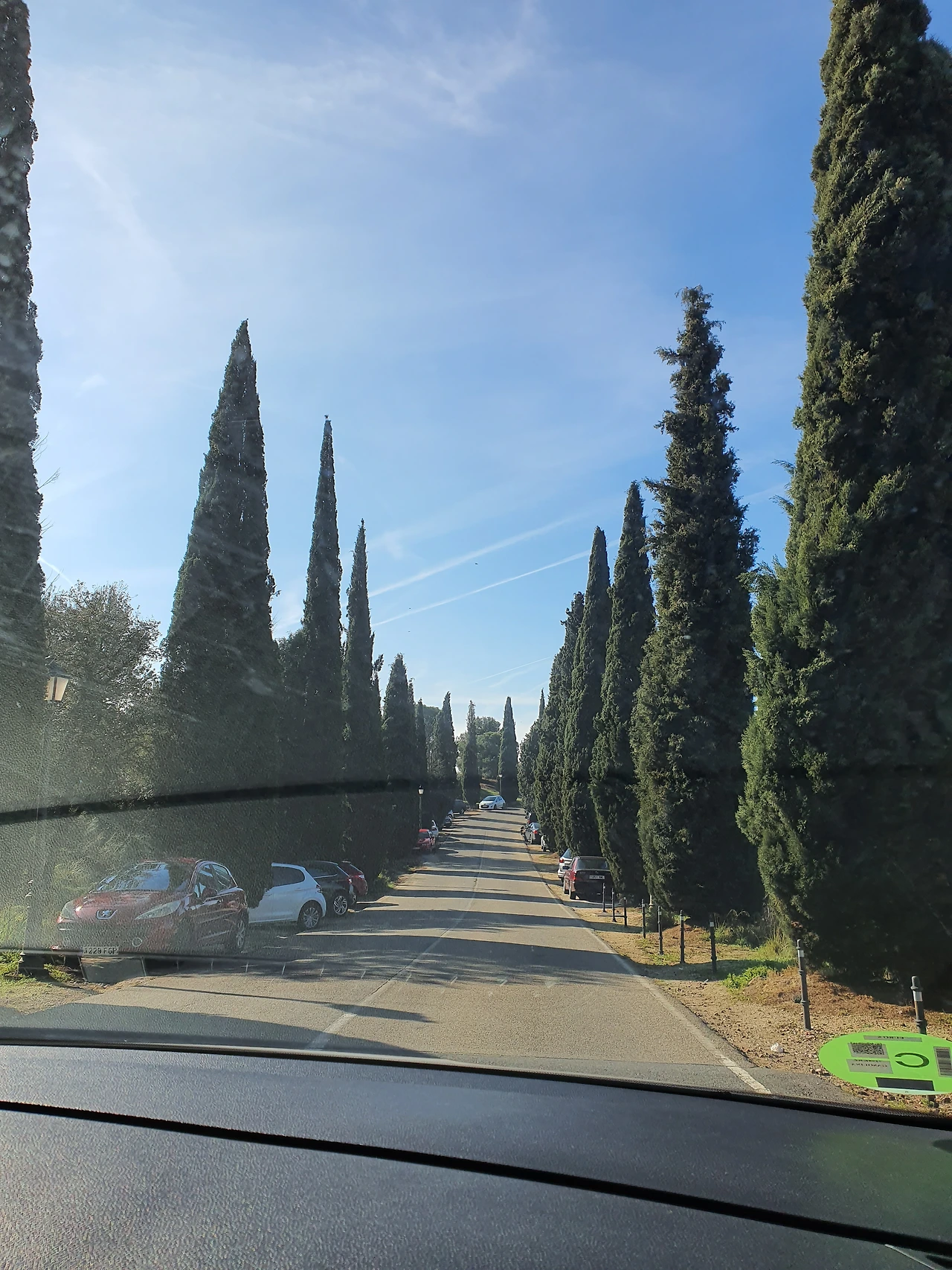 호텔 도로 양편에 늘어선 높다란 싸이프러스 나무가 인사를 건네주네요.
