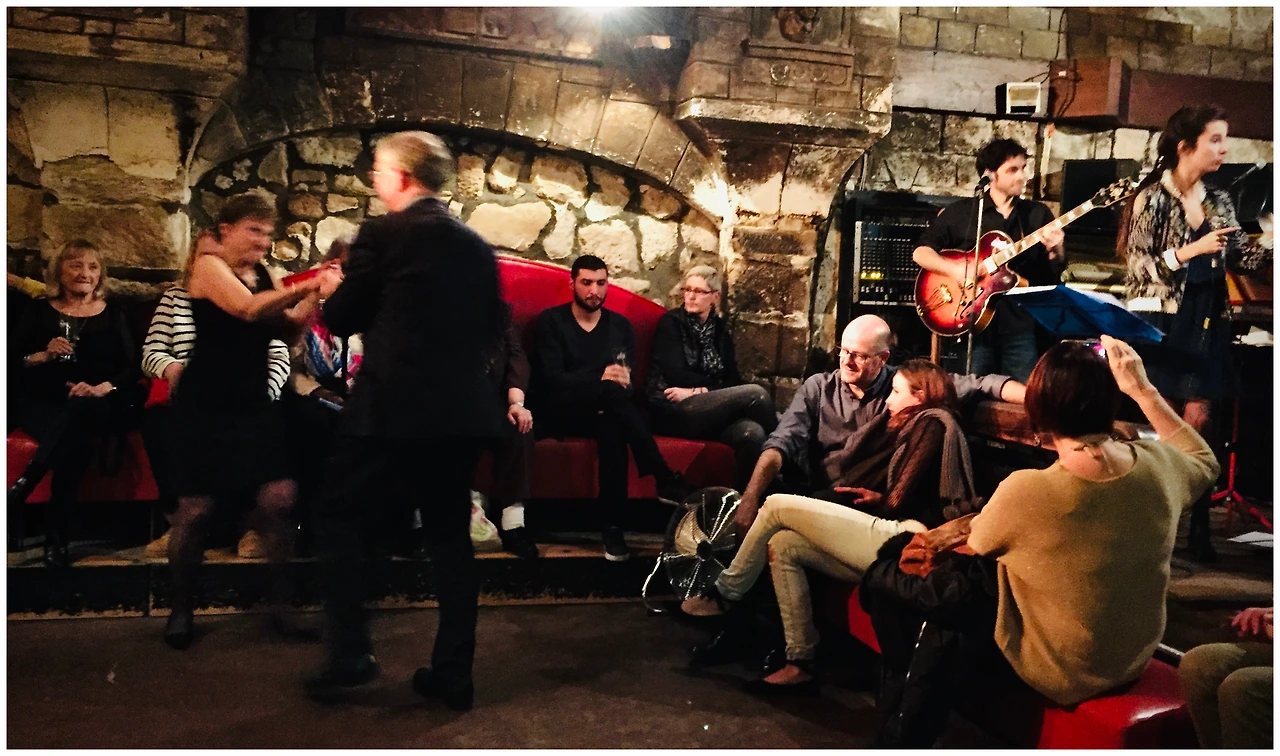 바에서 술 한잔을 받아 지하 클럽으로 내려갑니다. 일찍 온 덕분에 무대 맨 앞에 앉아 공연을 관람합니다. 옆에 앉은 커플은 모리셔스에서 파리에 친구를 만나러 왔다고 합니다. 운 좋게도 그 친구가 밴드의 콘트라 베이시스트인지라 공연 후 저와도 인사를 나눕니다.