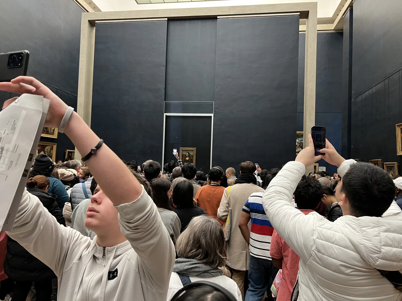 처음 루브르를 방문했을 때는 나무 펜스 없이 그저 넘어가지 못하도록 가이드라인만 있었습니다. 이후에 왔을 때는 나무 팬스가 세워졌고, 이번에는 나무 펜스 뒤로 또다시 가이드라인이 세워지고 입구와 출구를 따로 나눠놨어요. 일반통행이 된 것입니다. 모나리자 감상은 고사하고 사진 한 장 남기는 것이 목표가 된 지 이미 오래입니다. 박물관의 기능을 상실한 것이죠.