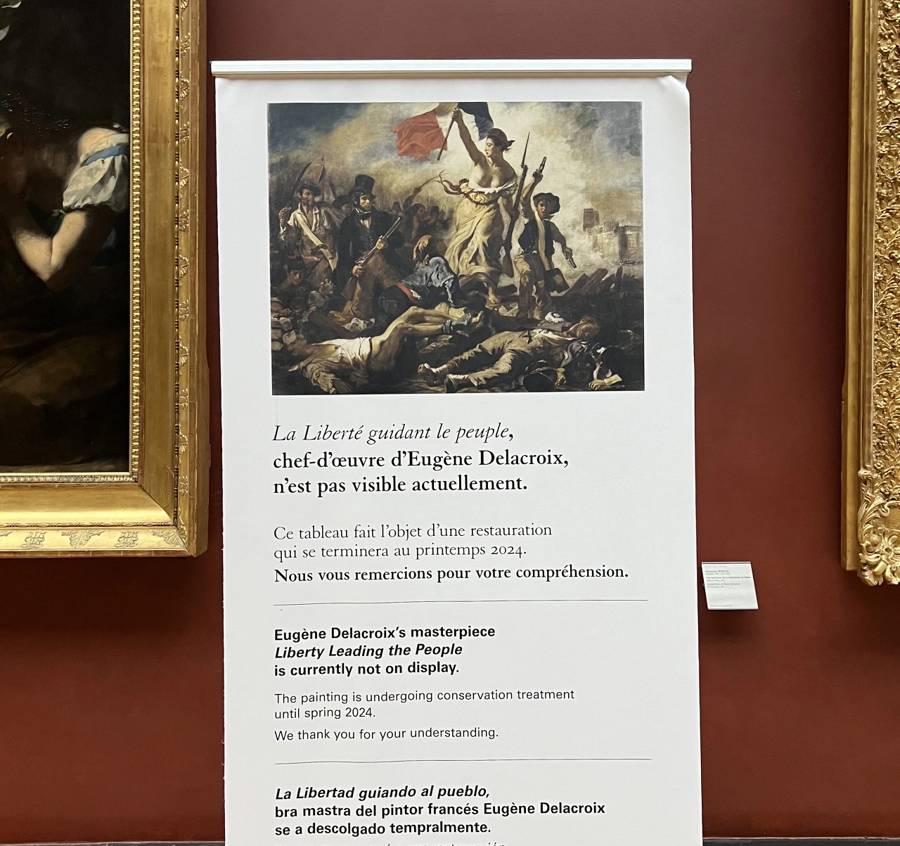 눈치 모르고 기분이 더없이 좋습니다...무언가 잘 풀린다 생각할 때 항상 조심해야 합니다. ' 싸늘하다. 가슴에 비수가 날아와 꽂힌다.' 그런데 딸 Z가 그토록 보고 싶어 했던 들라크루아의 <민중을 이끄는 승리의 여신>이 사라지고 없습니다. 오랜 전시로 손상된 부분을 복원하기 위해 이번 봄까지 전시를 하지 않는다고 합니다.