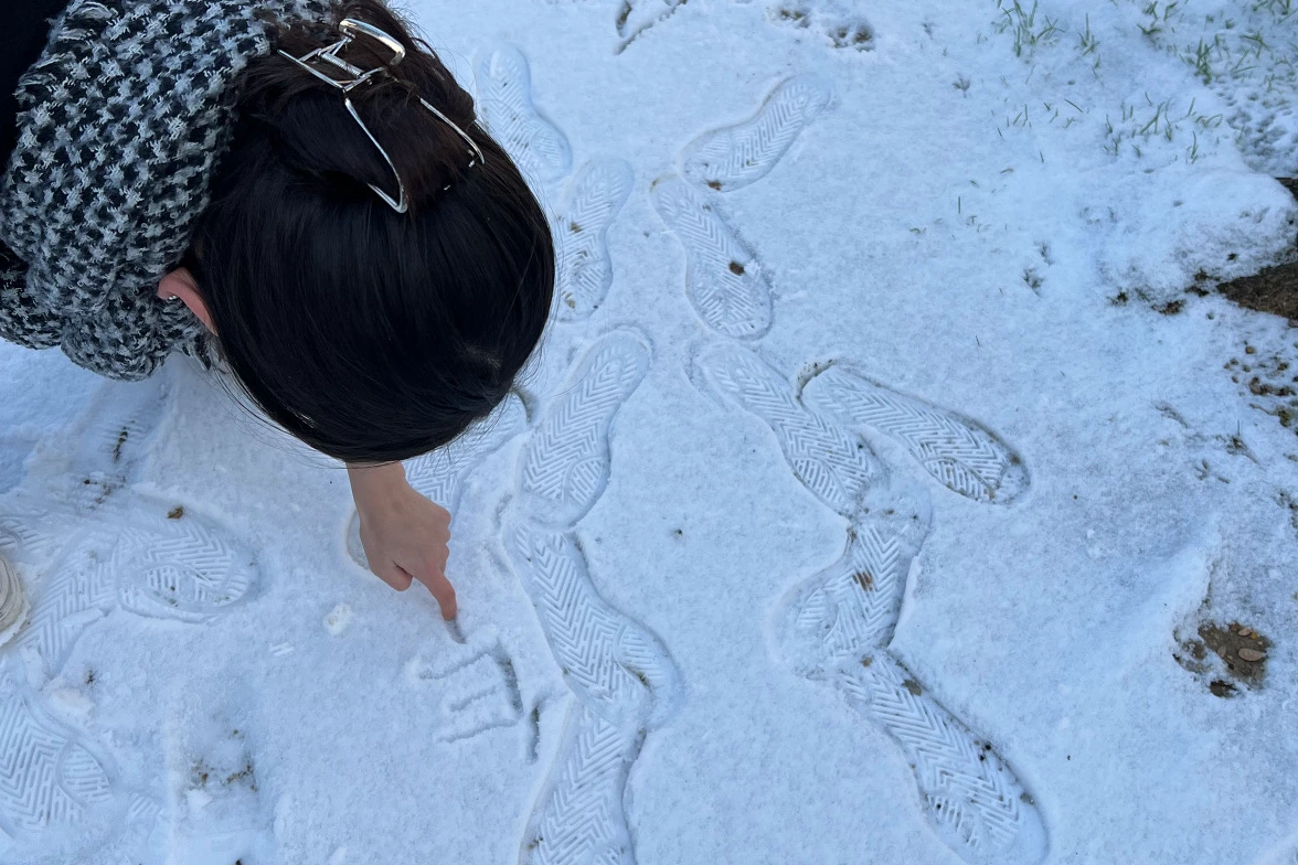 아직 밟지 않은 눈에 흔적을 남깁니다. 중3이지만 아직 눈이 좋은 나이의 아이는 아이인가 봅니다.