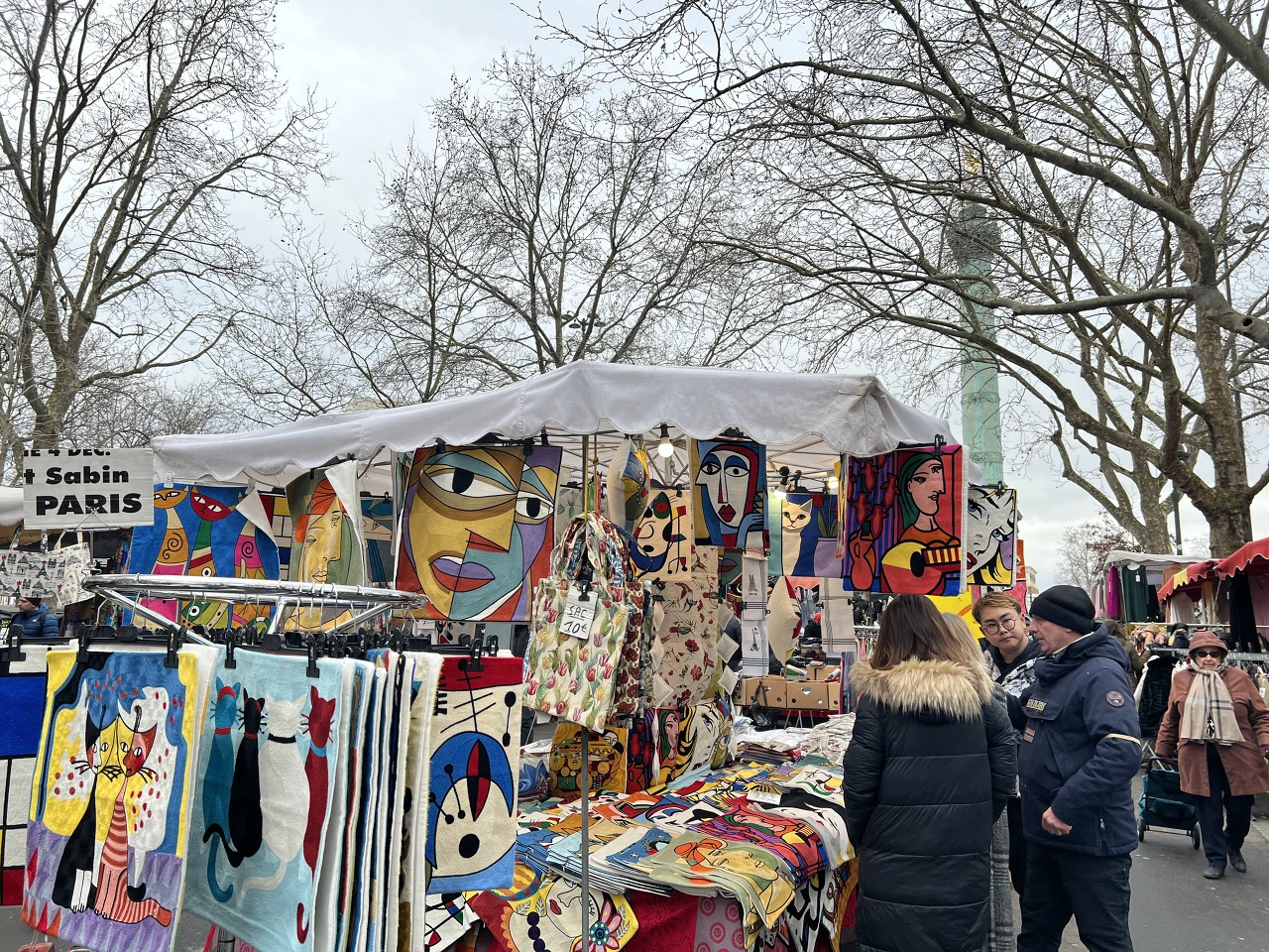혁명탑 아래로 노천 시장이 펼쳐져 있습니다. 시장이 선 이곳 광장은 과거 바스티유 감옥이 자리했던 곳입니다. 프랑스 시민들이 루이 16세와 귀족, 성직자의 지배에 항거하고 권위에 저항하며 이곳 바스티유의 감옥을 습격하면서 프랑스혁명이 발발하게 됩니다. 그런 의미에서 시장이 열리는 곳으로 더없이 제격입니다.