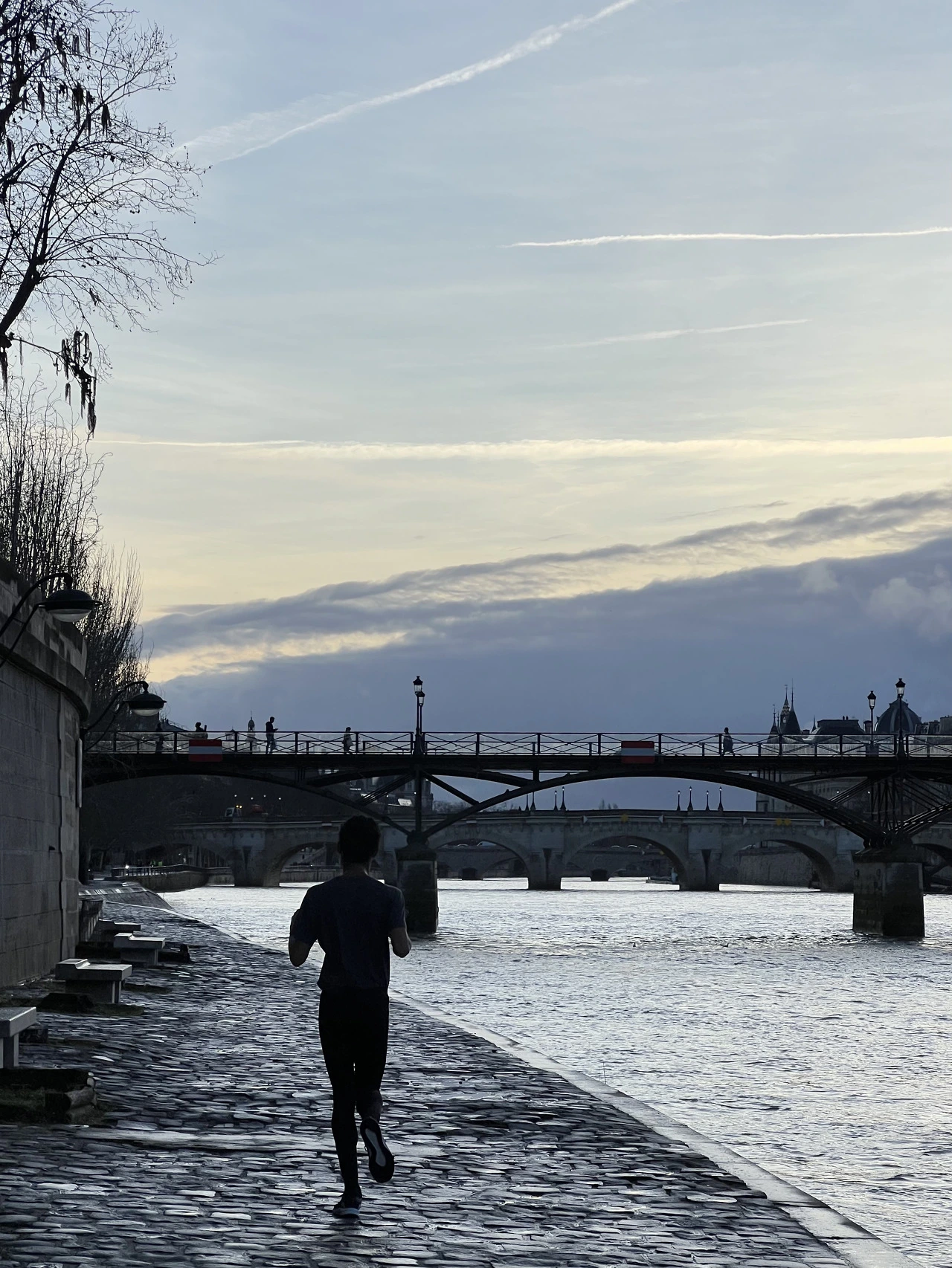 런닝화를 신고 아직은 어둑한 마레 지구의 골목길을 나섭니다. 아침 일찍 바쁜 걸음으로 하루를 시작하는 파리지앵, 먼 곳에서 파리를 방문한 듯 커다란 트렁크를 끄는 여행자, 거리를 청소하는 아프로 머리의 청소부, 불 켜진 동네의 작은 바게트 가게, 지나가는 남성에게 담뱃불을 빌리는 선글라스 낀 멋스러운 파리지엔느를 지나 조금은 빠른 속도로 5분 거리에 있는 센강을 향해 걷습니다.