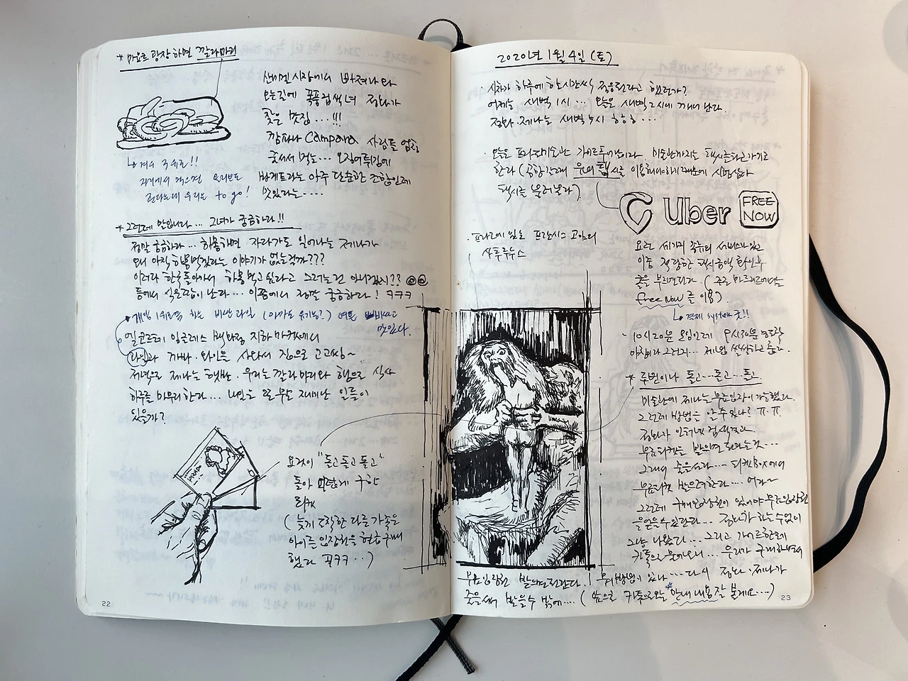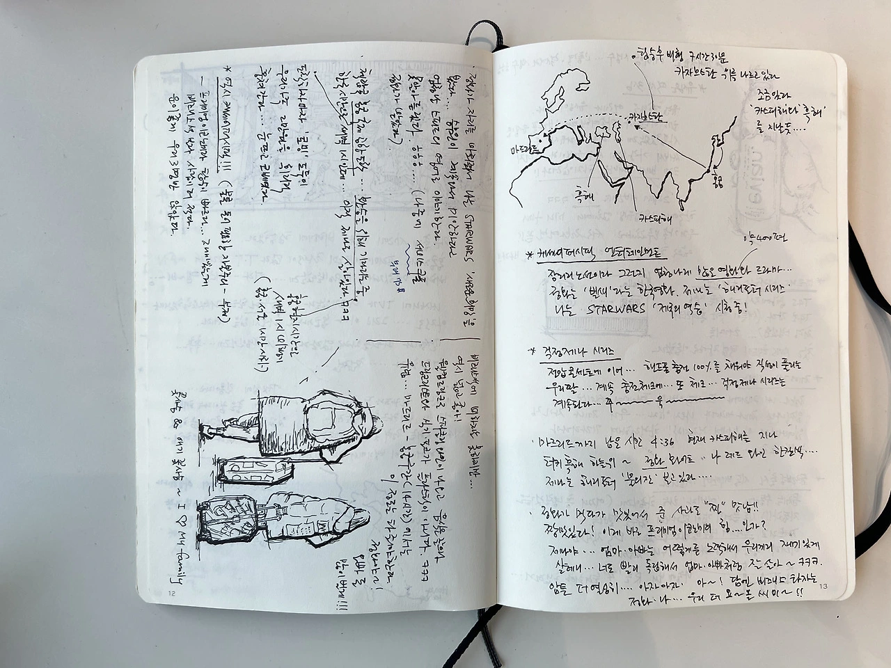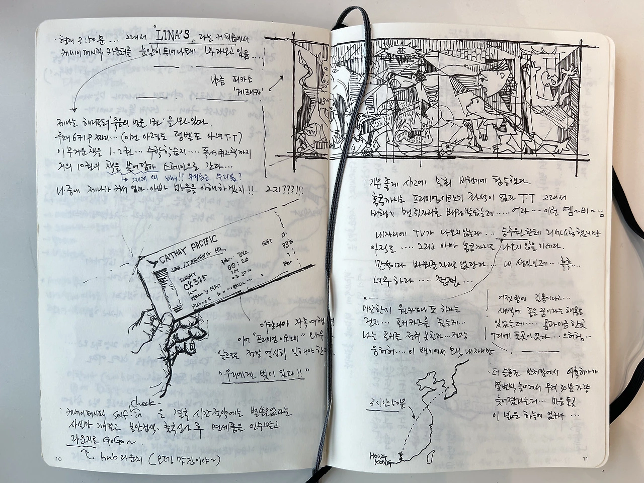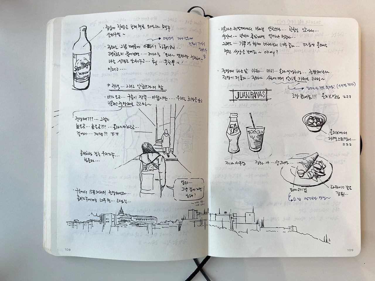 노트를 집어듭니다. 일기는 한 장 한 장이 오롯이 여행의 기억으로 내게 말을 겁니다. 여행지에서 글을 쓰고 스케치를 남기는 그 순간 또한 여행의 일부인지라... 일기를 보게 되면 더욱 여행의 기억이 애틋해집니다.