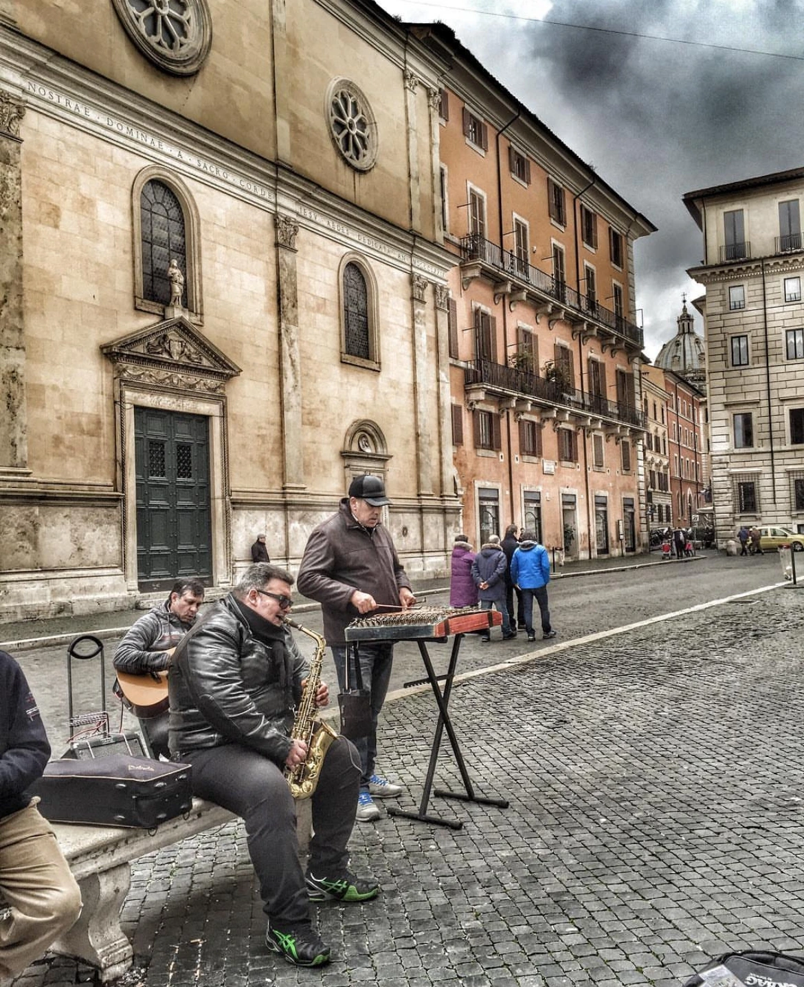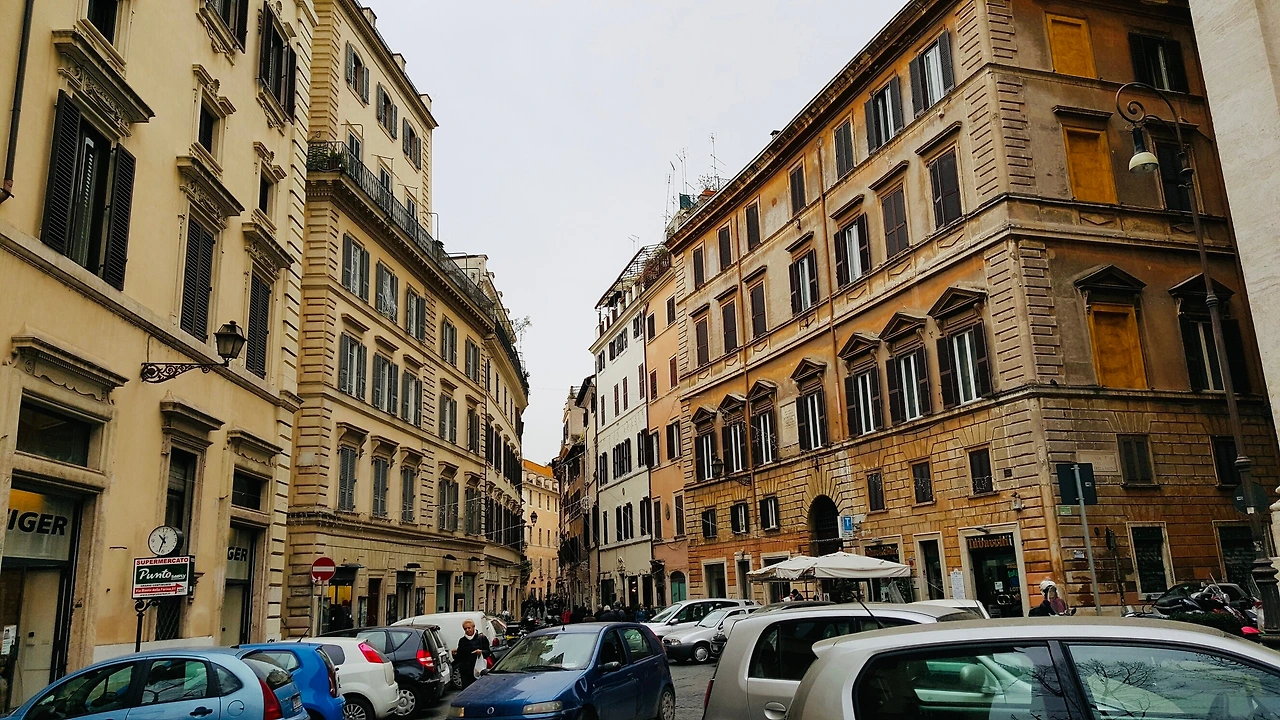 오래된 도시 로마의 좁은 골목길을 걷습니다.