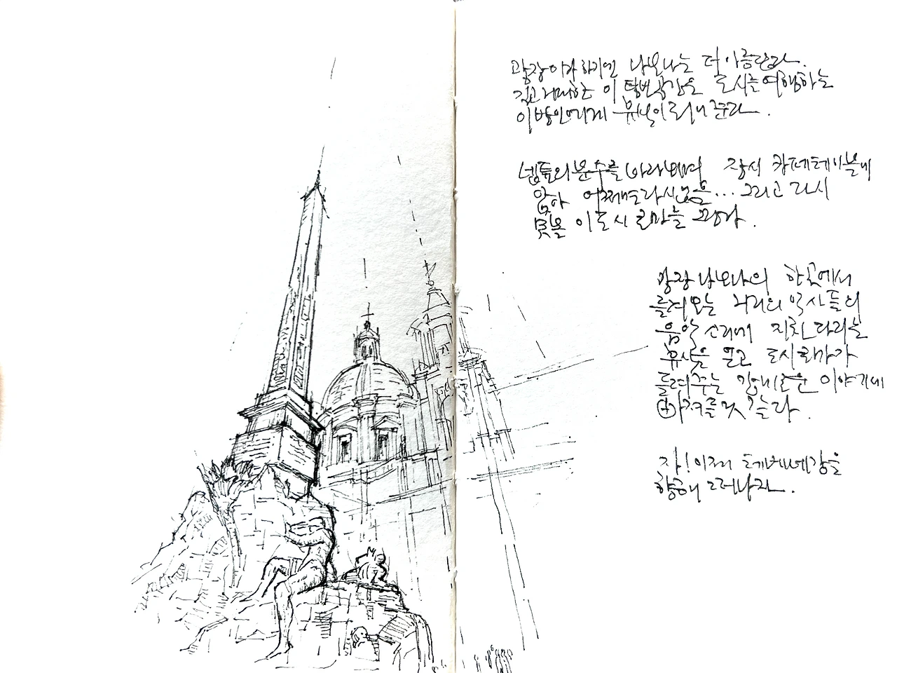광장 중앙 오벨리스크와 분수에 흔적을 남기며