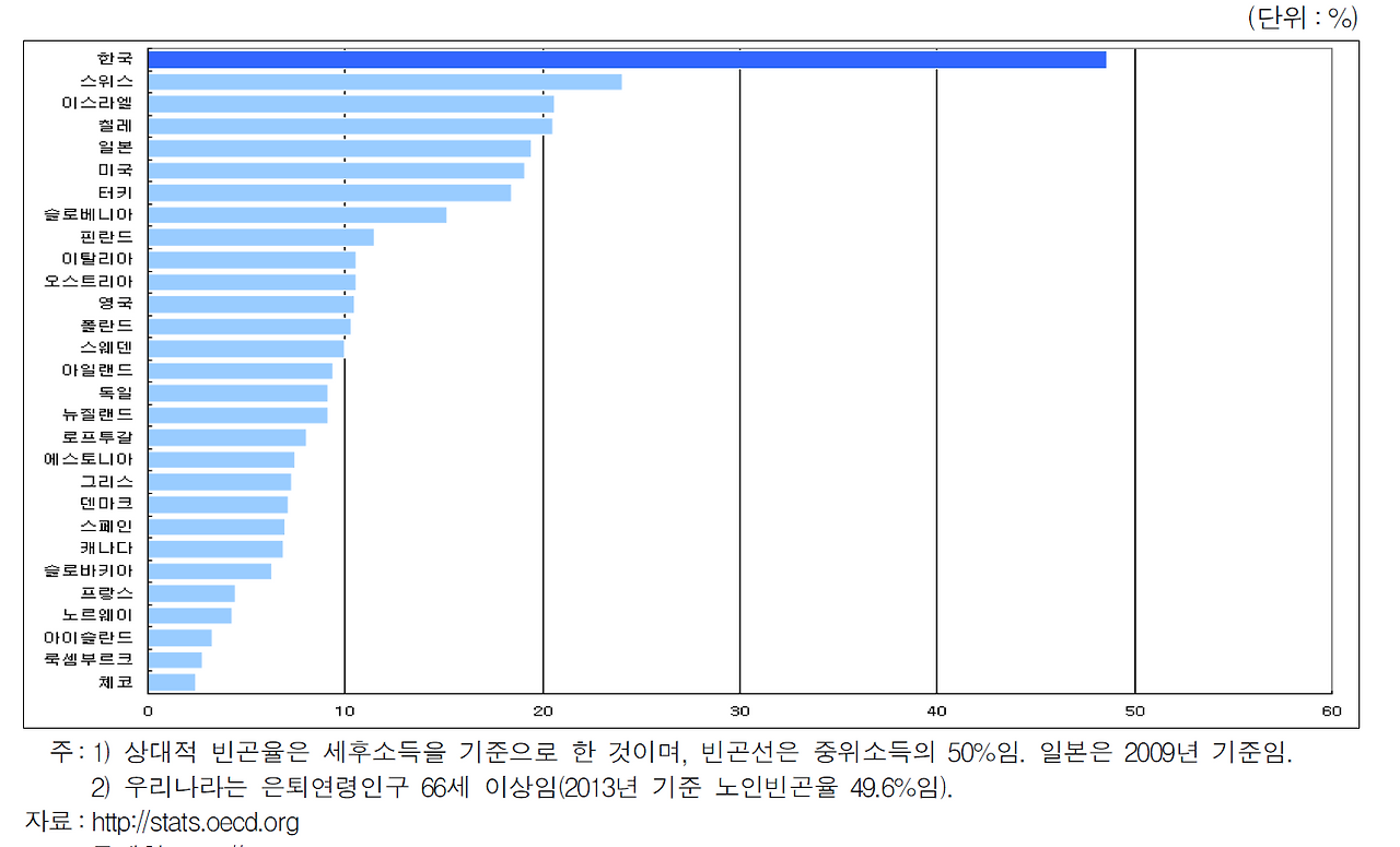 우리나라 노인(65세 이상) 빈곤율이 회원국 중
