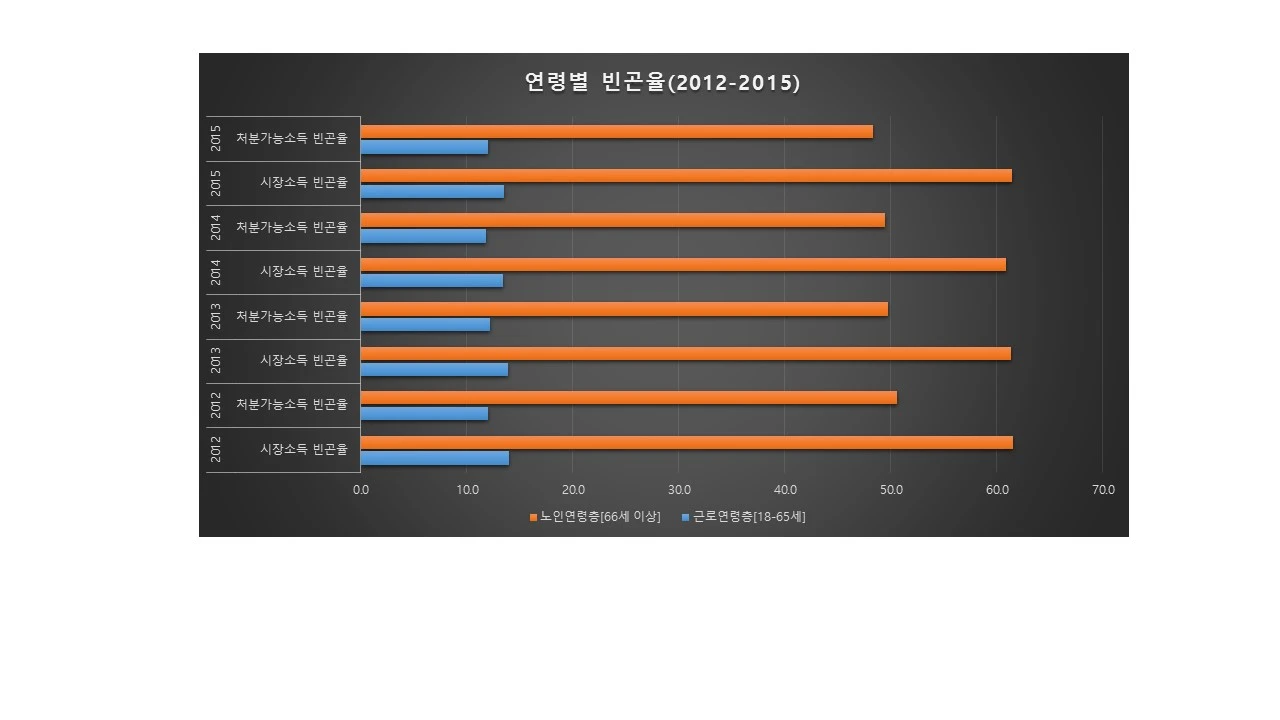 두 연령대 빈곤율을 비교해서 나타나고 있습니다.