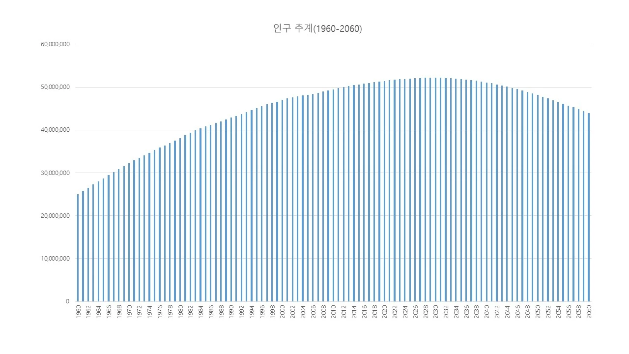 2044년에는 5천만 이하로 줄어들 것입니다.