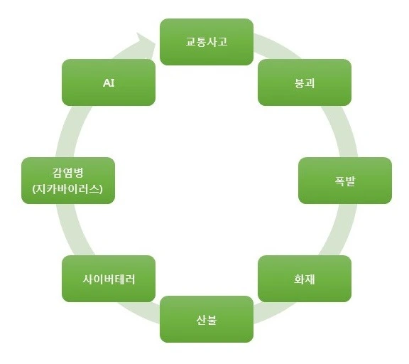 <국민안전처>에서는 재난의 유형을 자연재난, 사회재난, 생활안전 있다고 정의하고 있습니다.