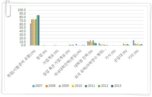특이한 것은 2012년과 2013년에는 취업을 하겠다는 응답이 이전보다 증가하고