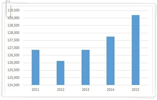 아래 그래프는 2011-15년 까지 대학원 입학자(석사과정+박사과정)의 변화를 나타내고 있습니다.