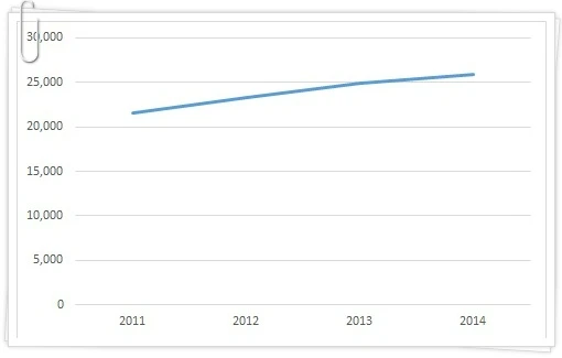 박사과정은 2011년부터 2014년까지 상승하고 있습니다.