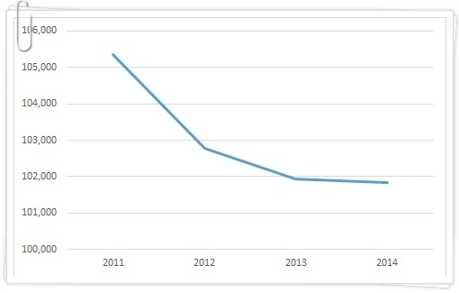 2011년부터 꾸준히 하락하고 있습니다.