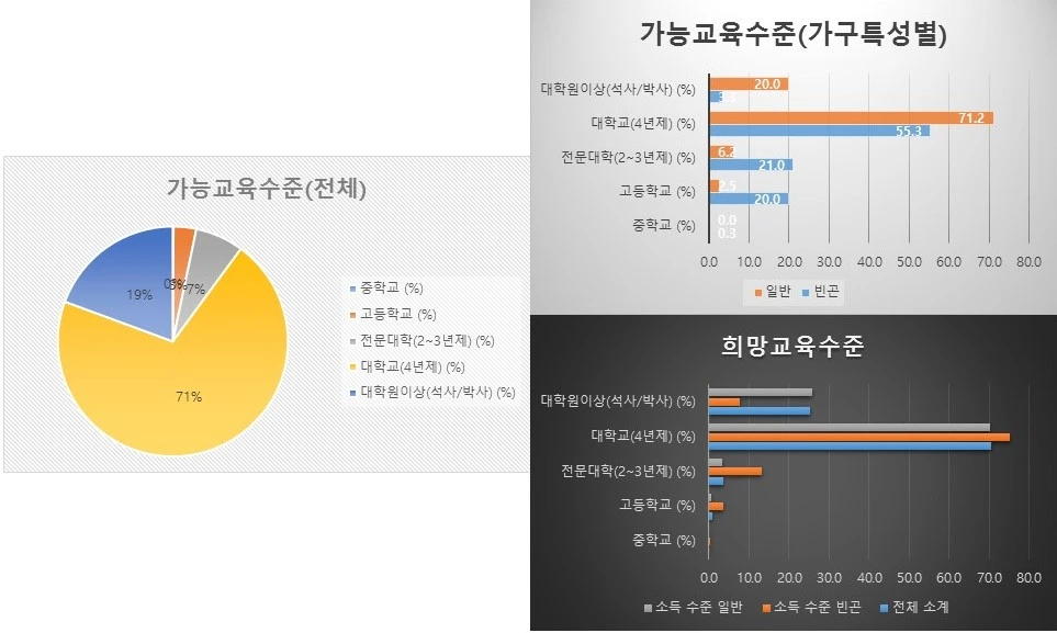 위 그래프는 가정에서 원하는 희망 교육 수준과