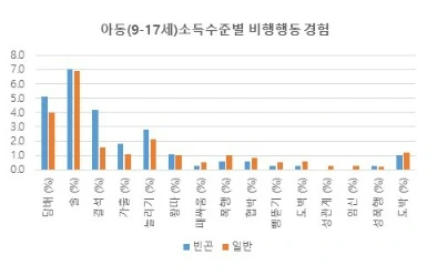 빈곤 아동과 일반 아동 비교 자료를 찾아봤습니다.