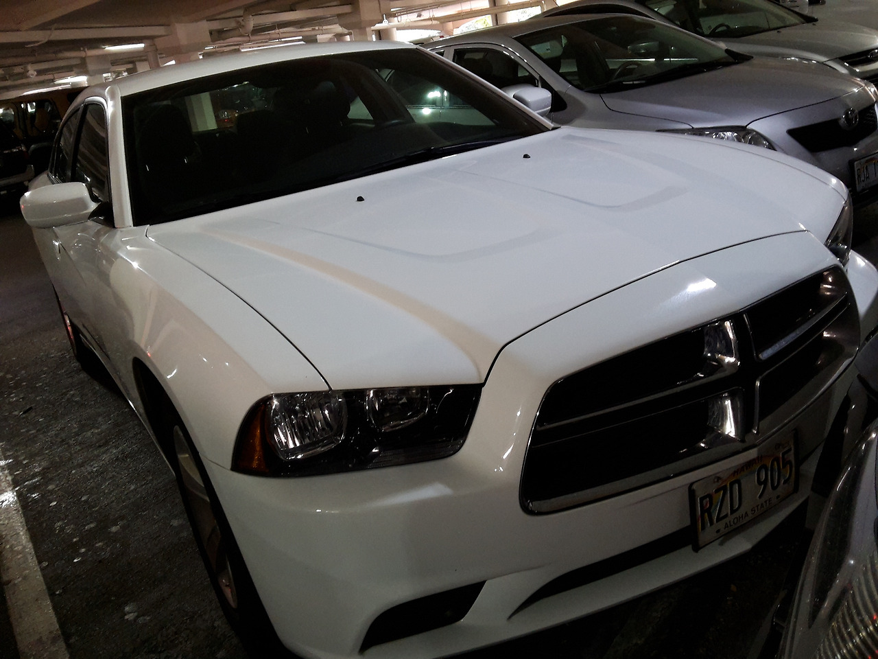 그곳엔 멋진 흰색 세단이 반갑다고 깜빡이를 깜빡거리고 있었다. 내심 아반떼 급이 아닐까 생각을 했는데, 제법 큰 Dodge Charger가 기다리고 있었다. 때마침 Charger 양 옆으로 소형차들이 놓여 있어서 적당한 착시효과로 Charger가 더 거대하게 보였다. 크라이슬러 브랜드는 첫 운전이다. 저레벨이 나올 거면, 피아트의 ALFA ROMEO가 나왔으면 더 흥분되었겠지만, 12일 동안 나의 애마로 기대 이상의 차에 만족했다.