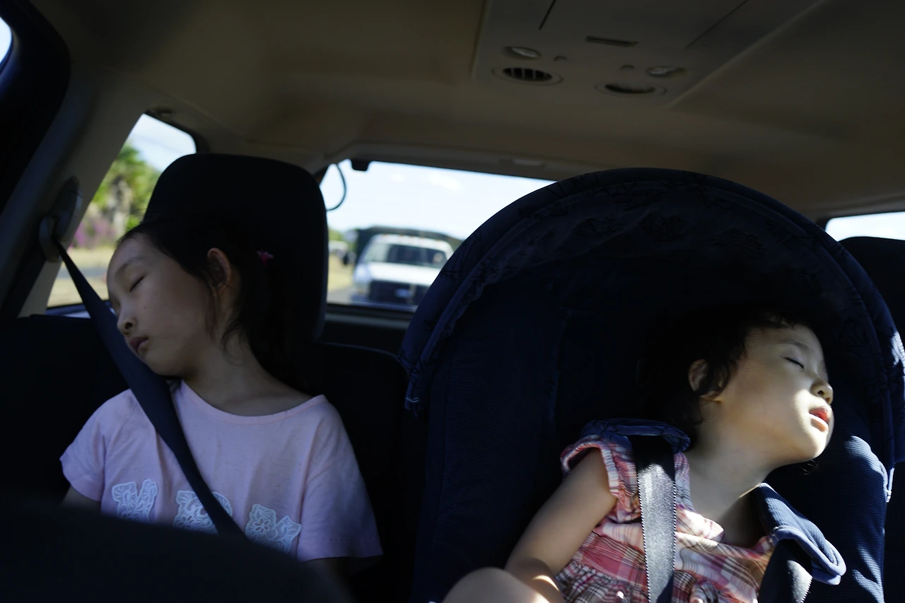 그래도 거북이가 없는 것보단 백 배 낫다. 이 좋은 소식을 가지고 다시 차로 돌아가서 아이들을 깨웠다. 자고 일어나면 습관적으로 짜증 한 번씩 부려주는 아이들도, “거북이, 거북이, 저기 밑에 거북이 있어. 거북이 보러 가자”라고 깨웠더니 눈을 번쩍 뜨고 빛의 속도로 안전벨트를 푼다.
