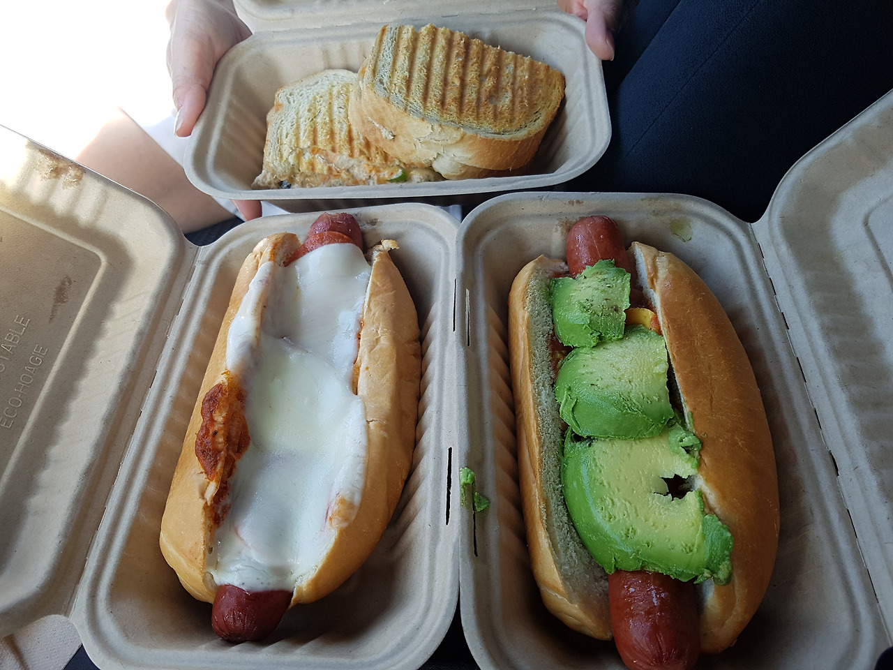 수영 끝내고 배가 출출해서 시나몬을 먹으러 나갔다. 마우이에서 가장 유명한 시나몬 가게가 콘도에서 5분 거리였다. 하지만 아쉽게도 문이 닫혀 있었다. 계획이 틀어진 위기 상황인가? 노노, 전혀 그렇지 않다. 이럴 때 충실한 사전 준비의 위력이 나온다. 당연히 시나몬 가게가 여의치 않을 시 옵션 2가 준비되어 있었다. 바로 옆 블락의 ‘델리 808’이란 레스토랑이었다. 그곳에서 아보카도 핫도그, 피자 핫도그, 파니니와 쿠키를 사 와서 차에서 먹었다. 아보카도와 피자 맛인데 맛이 없을 수가 없지. 다만 인간적으로 양이 너무 많았다. 이런 크기는 샤킬 오닐이나 돼야 다 먹을 수 있을 듯했다.