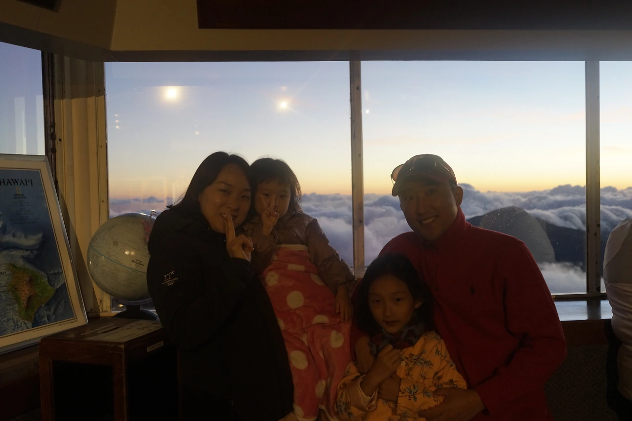 첫 번째 줄에서 보려면 지금 나가서 좋은 자리 맡아야 했다. 하지만 애들은 여전히 꿀잠을 자고 있어서 내가 선발대로 먼저 나가봤는데, 일출이나 구름이 문제가 아니라 장난 아니게 추웠다. 다녀온 사람들의 후기에 춥다는 말들은 있었지만, 난 그래도 여기가 마우이인데 여름 치고는 추운 수준이 아닐까 생각했었는데, 그게 아니었다. 여긴 스키장 꼭대기 추위였다. 다시 차로 돌아가 복장을 점검했다. 지우 지아 옷은 충분히 두껍게 입히고 나왔다고 생각했는데, 그걸로도 모자랐다. 혹시 몰라 넣어둔 이불까지 돌돌 말아서 데리고 나갔다.