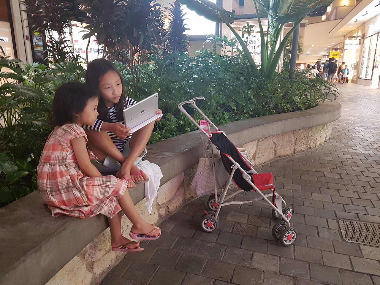 애들이 일어나자마자 우린 알라모아나로 갔다. 일단 저녁부터 해결하고, 와이프에게 하와이 쇼핑을 즐거움을 줘야 했다. 와이프는 끈이 떨어진 조리를 하나 사야 했고, 처제가 사달라고 한 것도 ‘Bath& Body Works’에 들러서 사야 했는데, 이 둘은 사실 쇼핑몰로 가기 위한 미끼에 불과했다. 일단 숙제부터 해결한 다음 자유 쇼핑이 시작될 것이다. 물론 애들이 쇼핑에 무한대의 시간을 허락하진 않겠지만. 이럴 땐 아이들과 나의 이해관계가 일치한다. 애들 파이팅!