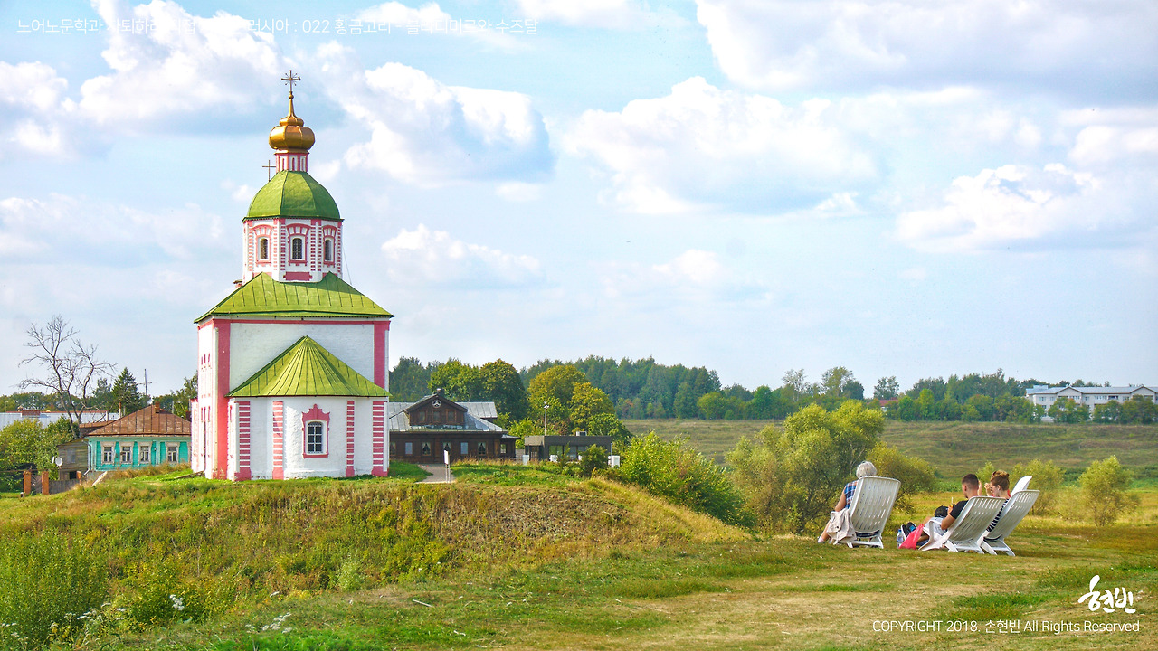 돌이켜 생각해 보면 수즈달 크레믈은 대릉원 같은 곳이었다. 대릉원이야 지금은 커플과 찍덕의 성지이고, 예전엔 그 높은 언덕에서 눈썰매까지 탔다지만 사실은 ‘1000년 전의 무덤군’이지 않은가. 크레믈의 언덕도 일부러 쌓은 것처럼 일정한 높이로 반듯하게 솟아 있었는데, 예전에는 방어용 성벽(=러시아어로 크레믈)이었기 때문이었다. 도시를 지키기 위함이니 강을 낀 높은 언덕을 골랐을 것이고, 공국을 지켜내기 위해 수많은 피가 흐르고 스며들길 반복해 온 자리가 이젠 선베드 명당이 되어 있었다. 1000년 후의 사람인 나는 이 자리에 어떤 사람들이 지나갔을지 상상하며, 흘러가는 구름을 숙연히 헤아려 볼 뿐이었다.
