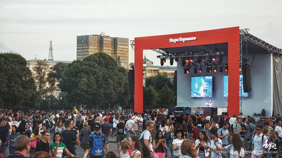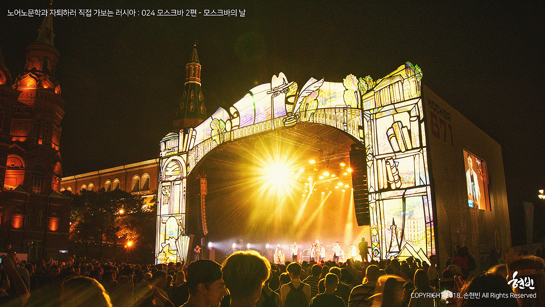 첫, 장기, 해외, 배낭여행에서 난 운 좋은 사람이었는가, 하면 그랬던 것 같다. 좋은 사람들을 많이 만나 아직까지도 근황을 주고받고 있고, 열차 화장실에 온갖 게 다 들어있는 힙색을 두고 왔을 땐 덩치 큰 아저씨가 직접 가져다주기까지 했으니까. 그런데 이건 정말 상상도 못 했다. 아무 생각 없이 덜렁 모스크바에 도착했을 뿐인데 플랫폼에서부터 도시 전체가 들썩들썩하고 있었다. 2018년 9월의 첫 번째 토요일. 모스크바의 871번째 생일이었다.