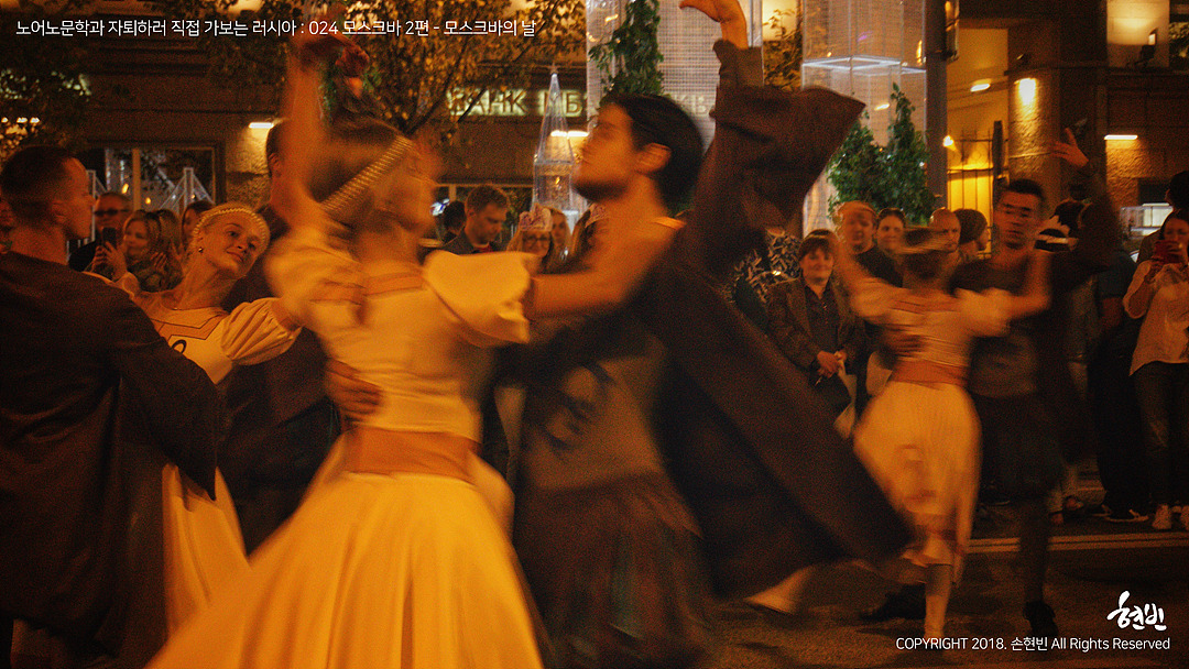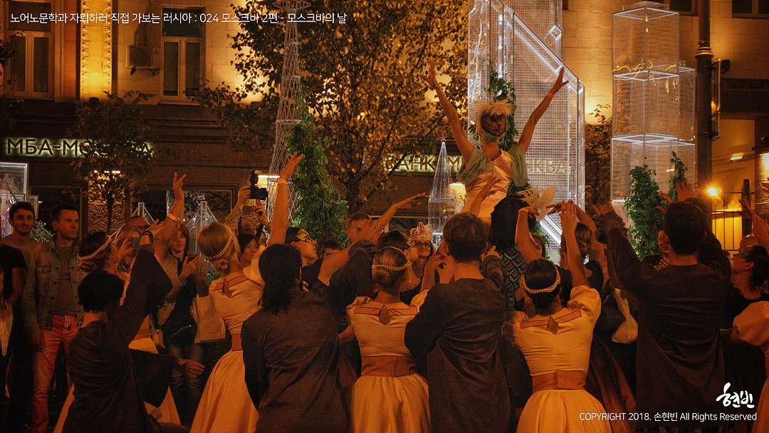 불꽃놀이가 끝나자 '오늘, 모스크바는 잠들지 않습니다!'라는 표어에 걸맞은 규모의 공연이 말 그대로 도시 전체에서 진행되었다. 붉은 광장 일대의 도로는 싹! 다! 인도로 개방되었는데, 나는 거기서 현존하는 모든 예술 장르를 본 것 같다. 팝, 락, 오페라, 뮤지컬, 클래식, 발레, 전통음악, 퍼레이드까지! 나는 그 압도적인 분위기를 겨우 감당해 낼 뿐이었다. 길거리에서 '백조의 호수'를 버스킹처럼 볼 수 있는 나라? 국립박물관을 배경으로 한 야외무대에서 곡예 서커스를 볼 수 있는 나라? 러시아밖에 없을 것이다.