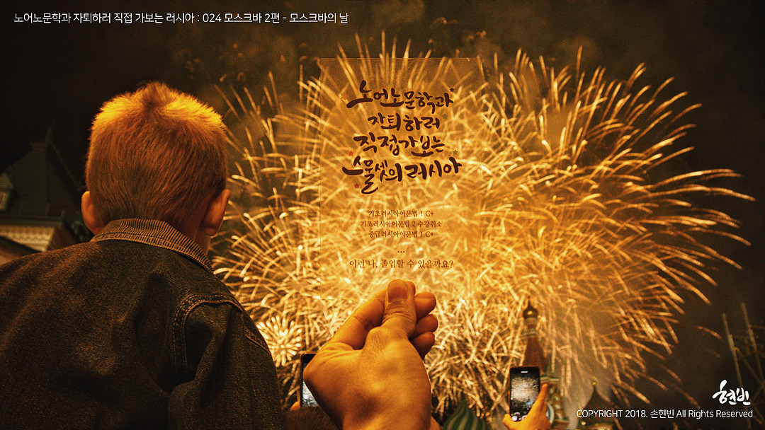 나는 아직도 붉은 광장과 바실리 성당을 배경으로 불꽃이 터지던 그 10분을 어떻게 설명해야 할지 잘 모르겠다. 그런데 괜히 또 감동해서 울까 봐, 이번엔 정말 크게 웃기로 했다는 것만큼은 기억이 난다. 이 운과 재수를 마음껏 만끽하고 싶었다. 불꽃놀이를 찍은 영상엔 사진에 정수리만 나온 어린아이가 “끄라씨바(예쁘다)!”라며 수줍게 웃는 게 녹음되어 있었다. 그렇다. 너무 예쁜 밤이었고, 모든 게 고마운 밤이었다. 이런 기회가 나에게 온 것도 고맙고, 이런 순간을 마주할 수 있도록 도전을 한 나 자신에게도 고마웠다.