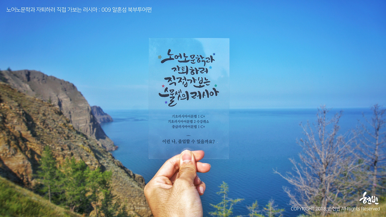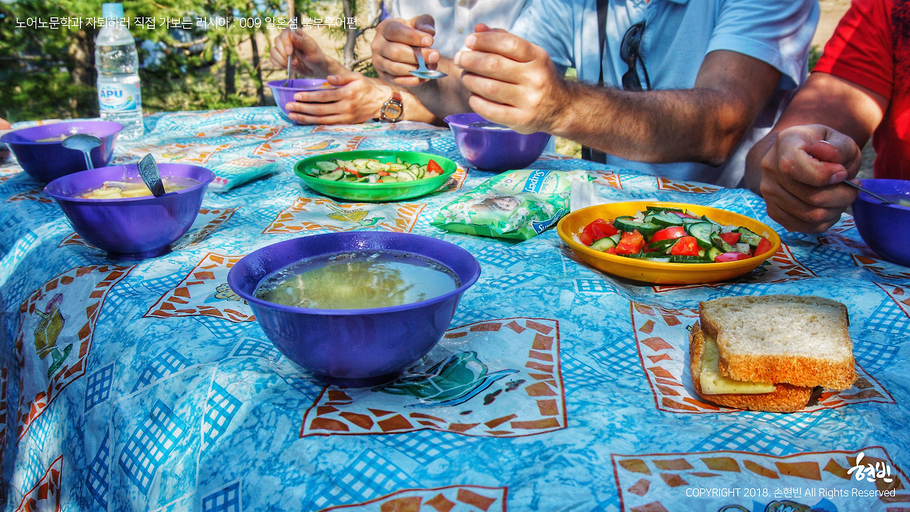다음 날 덜컹거리는 회색 승합차를 타고 섬 북쪽을 한 바퀴 도는 ‘북부투어’를 통해 보다 깊은 바이칼을 느꼈다. 안전장치라고는 울타리조차도 없는 곳곳의 오지에서 정말 자연스러운 자연을 마주할 수 있어서 좋았다. 지금까지 한 명은 떨어지지 않았을까 하는 생각은 들었지만, 일단 나의 하루에 그런 일은 없어서 다행이었던 하루. 사실 투어비 1000루블(한화 약 2만원)에 포함된 식사를 언급하고 싶은데, 기사님이 열심히 만든 샌드위치와 생선국은 지금껏 먹은 음식 중에 가장 투박했지만 기분 좋아지는 맛(사실 맛은 없었음)이었기 때문이다. 우리 투어 팀은 이처럼 다 다른 곳에서 올 수 있나 싶은 신기한 조합이었고, 리셉션의 설명과 달리 기사님은 투어 가이드를 해주시진 않았지만, 그것도 나쁘지 않았다. 때론 숱한 설명보다 장소 그 자체를 즐기고 싶을 때가 있으니까.