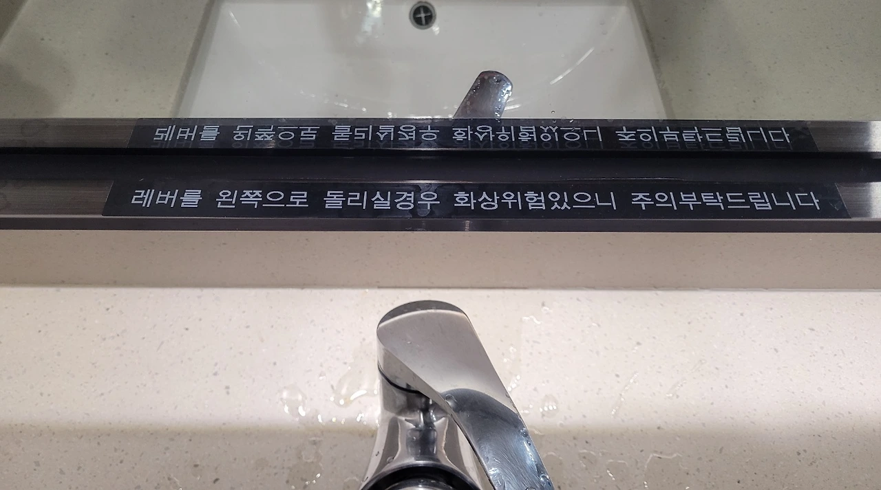 “레버를 왼쪽으로 돌리실경우 화상위험있으니 주의부탁드립니다”