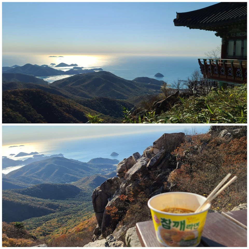 금산산장에서 내려다보면서 먹는 라면은 꿀맛이다