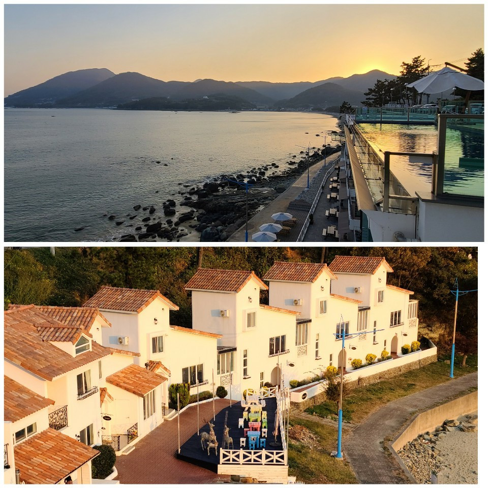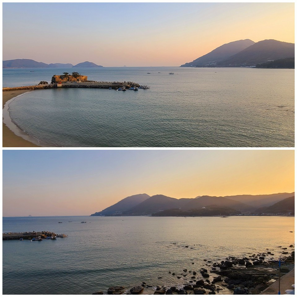 허기진 배를 채우고, 나가면서 인사드렸다. 방송 보고 찾아왔고 또 오겠다고. 너무나도 인상 좋은 사장님 내외가 밝게 인사해주신다. 좋은 환경 속에서, 하고 싶은 일을 하며 살아가는 사람들은 이렇게 인상이 좋다. 남해에서 마주한 첫 현지인 분들인데, 역시나 시작부터 좋다. 날씨도 좋고, 바다도 좋고, 사람도 좋다. 그리고 지금 이 순간이 너무 좋다. 숙소로 가는 도중, 바다와 집이 보이면 바로 주차해서 사진을 찍었다. 어디를 찍든 그림이고 예술이다. 사진 못 찍는 나도 사진작가가 되는 기분이다.