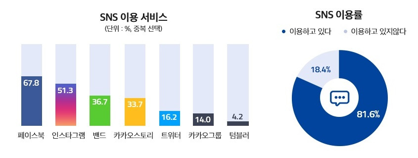 보통 페이스북과 인스타그램, 트위터를 떠올리고는 한다. 현재는 영상으로 바로 보여주는 유튜브가 '원탑'이 되었지만, 아직도 SNS에서 페/인/트 저 3개의 앱이 인기가 높다. 내가 재직하고 있는 회사에도 공식 유튜브와 페이스북, 인스타그램을 운영하고 또 그것을 관리하는 팀도 있다. (심지어 외부 익명게시판 블라인드에 적히는 글도 모니터링하는 것을 알고 놀랐다. 참으로 무서운 세상 ^^;) SNS가 우리 생활에 이제 깊숙하게 자리 잡고 있다.