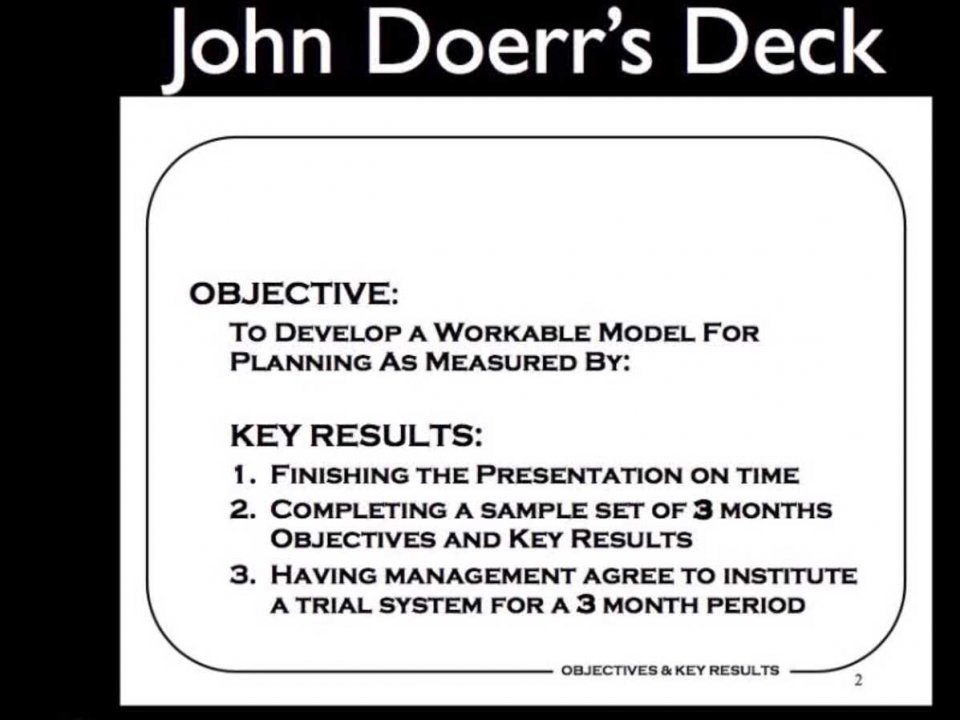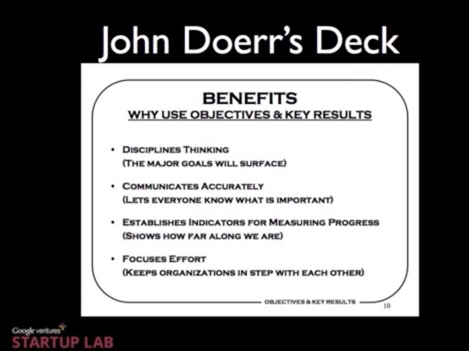 구글이 1년도 채 안되었을 때, 목표와 핵심 결과 설정법(Objectives and key Results, 이하 OKRs)을 발명한 인물 중 한 명인 John Doerr(이하 존)는 구글이 이 조직적인 시스템을 쓰는 것에 대해 발표하였습니다.