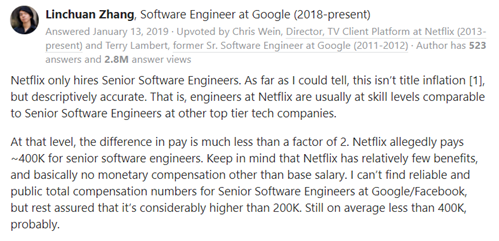 [참조. Quora 사이트 등재된 Netflix 보상에 대한 SW engineer 의견]