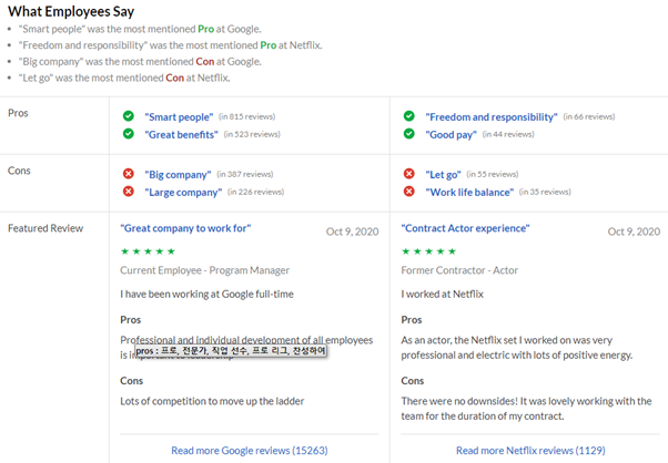 [참조. 구글 vs. 넷플릭스 임직원 만족도 평가]