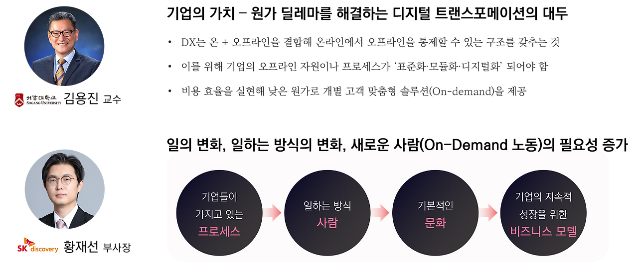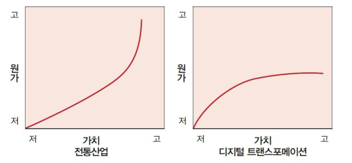 서강대학교 김용진 교수는 기업이 비용의 효율을 실현하여 고객이 수용할 수 있는 적정한 가격에 개인화된 솔루션을 온디맨드 형태로 제공할 수 있도록 하여, (고객에 제공하는 가치가 높을수록 비용이 높아지던) 고질적인 가치-원가 딜레마를 해결하게 된 것이 디지털 전환의 가장 큰 기여라고 말한다.