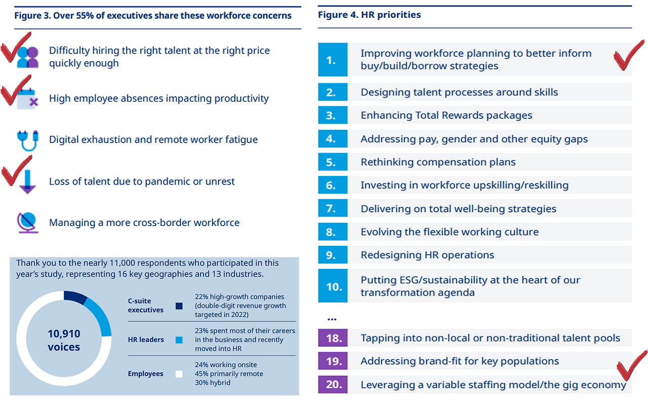 Mercer의 2022~2023 글로벌 인재 트렌드 리포트의 내용에 따르면 글로벌 고성장 기업들의 가장 큰 고민들은 안정적으로 인력 workforce 을 유지하는 것이었다.