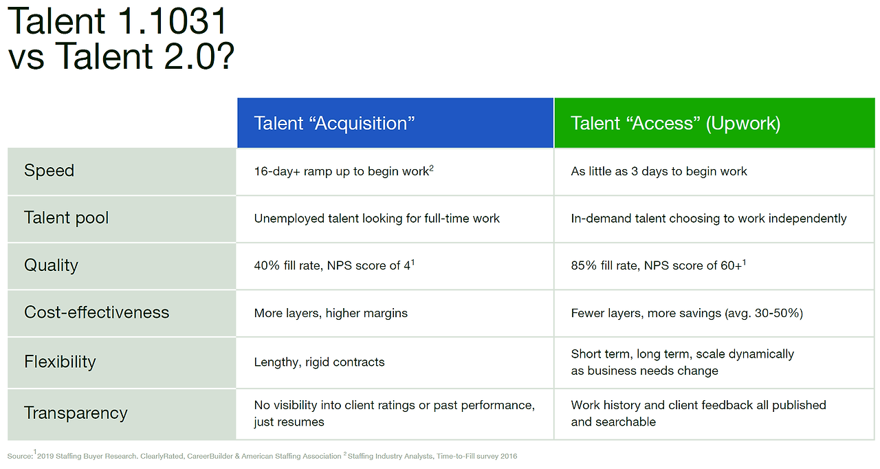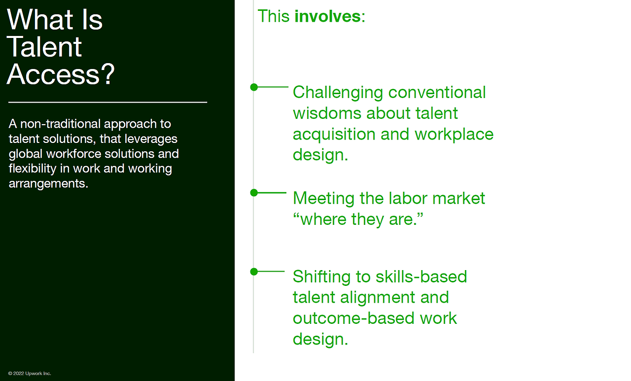 업워크의 CHRO이자 HR/Talent Strategist인 Tony Buffum은 기업이 추구해야 할 새로운 인재 전략으로 기존의 인재 확보와 조직 설계에 대한 기존의 통념과는 다른, 인재 활용 talent access이라는 새로운 접근을 제시한다.
