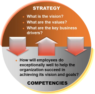 역량 모델은 기업이 가고자 하는 방향(ex. Mission 또는 성과 목표)과 구성원들의 직무 성과를 역량이라는 매개체로 연계시킨다. 역량 모델은 개인의 역량이 향상되면 자연스럽게 조직의 역량도 향상된다고 전제한다. 성과를 내기 위한 합당한 노력의 투입 input이 일의 과정 상에서 잘 이루어졌다면, 그 일의 결과인 조직의 성과는 연역적으로 자연스레 향상된다는 것을 가정하는 개념이다.